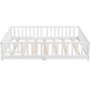 Racxily Twin Floor Bed with Door & Fence, Solid Pine Wood Platform Bed Frame for Kids, Gray/White