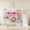 Full Size Loft Bed with LED Light & Charge Station, Metal Loft Bed with Desk and Staircase, White