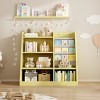 Racxily Yellow Wooden Kids Toy Storage Cabinet | Adjustable Bookshelf for Playroom Nursery & Living Room