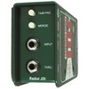 The Radial JDI MK3 Passive Direct Box is a Jensen transformer equipped, high-quality passive direct box that has the advantage of providing complete isolation for reduced noise. The exceptionally low phase distortion, almost perfect linear response, and low harmonic distortion make the JDI direct box a superb choice for recording or live performance. The rugged construction allows it to be used in abusive environments without concern. The Radial JDI Mk3 is ideal for acoustic guitars, bass, and keyboards. Considered by many to be one of the finest passive-operation direct boxes available, this Radial DI employs a Jensen isolation transformer for optimum audio performance. 60-cycle ground loop elimination and adept handling of high-output, active instruments and keyboards make the Radial JDI discrete and versatile. Steel I-beam construction, baked enamel finish, and protected faceplate mean Radial JDI is built to survive. The Radial JDI passive direct box employs the Jensen JT-DBE transformer as its main drive engine. The Jensen DBE transformer employs a laminated nickel core with low-permeability and no magnetic memory, therefore eliminating phase distortion caused by the disruption of fundamentals and harmonics. The distinctive book-end design protects the switches against damage from abuse by providing a protective zone on both I/O panels. A baked enamel finish resists scratching while a no-slip rubberized pad on the bottom stops the JDI direct box from moving around and aids isolation. Inside, the Radial JDI features compound, welded I beam construction that protects the sensitive electronics from outside stress. The internal skeletal frame is locked together with 4 hex screws. The input panel features a 1/4" instrument input and traditional thru-put. An innovative merge function allows the thru-put to be converted to a second input to allow stereo to mono summing. This is useful for interface with stereo sources such as keyboards or CD players in live shows where audio channels may be not always be plentiful. The Radial JDI also sports a -15dB pad to interface with higher output levels. The output panel features a balanced 600-ohm XLR connector with pin-2 hot following the AES specification. A polarity reverse switch toggles pin-2 and pin-3 to allow the JDI direct bpx to interface with older non-AES equipment and for creative tinkering. The ground lift switch disconnects the XLR pin-1 ground from the Radial JDI for 100% input-to-output isolation. A second -30dB pad used in tandem with the -15dB input pad allows the JDI to be connected in parallel with a speaker. This, for instance, allows the engineer to tap the sound coming from a guitar amplifier speaker post-distortion thus adding another creative dimension. This unique function incorporates a speaker emulation filter circuit. The JDI input features a high 10kOhm input impedance for minimal loading. This makes the Radial JDI ideal for interface with all instruments. The 600-ohm mic level output allows the JDI box to be used with typical snake systems that incorporate bridging transformers (splitters) without fear of overloading them. As a passive device, the JDI direct box is particularly ideal for use with high output devices such as active or self-powered instruments such as acoustic guitars and basses with built-in battery-powered preamps, and AC-powered equipment such as drum machines, DJ mixers, and keyboards. These devices tend to overload most active direct boxes making them sound thin and edgy. The Radial JDI direct box is capable of exceptionally high signal handling without distortion.