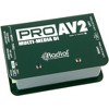 The Radial ProAV2 is a passive direct box specifically developed with the audio-video integrator in mind. It has full two-channel stereo functionality. To eliminate the need for various adaptor, a "Swiss Army" array of connections are provided, including 1/4" for instruments, RCA and 1/8" connectors for consumer electronics and computers, and a +4dB XLR input for professional systems. Front panel connectors can also be used as thru-puts to allow multiple patch points. Custom wound transformers are employed, which are able to withstand exceptionally hot levels while maintaining linearity from 20Hz to 18.5kHz. The resulting smooth Bessel curve is warm and natural, making the ProAV2 Passive DI box particularly adept at handling digital sources that can sound harsh. Transformer isolation adds the benefit of eliminating ground loops that cause audio hum and buzz and video hum bars or snow.
