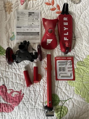 Radio flyer provided me a free sample. We have had an older version of a radio flyer scooter and this one is way easier to use. It is easier to steer, the handle bars adjust for height, the grips are rubber, not foam like the older version which have started to dry rot. My 3 and 5 year old granddaughters enjoyed it. I have a 1 year old that we pushed on it, but she will definitely grow into it. When I received it, it came in a box and was easy to put together. The directions were pictures and everything you needed was there, except a screwdriver. This is a great product.