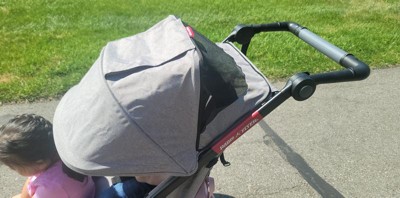 Radio Flyer provided me with a free sample to test and try out. Both my 4 year old and my 2 year old have had fun riding in it. Given the price point, it is a great jogging stroller. We are very impressed with how smooth the ride is for our kids even on bumpy surfaces! Both my husband and I have preferred jogging in the on-demand steering position as we've had a little trouble switching between modes.