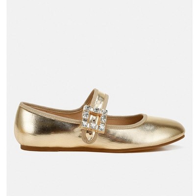 The beautiful flat Mary Jane sandals are stunning with the brooch embellishment and exhibit a glamorous aesthetic. The extra comfortable cushion and flat heels offer a relaxed and strain-free fit which makes them ideal for day to night events! Type: Mary Jane Sandals Upper Material: Metallic Pleather Outer Sole: TPR Closed Round Toe Flat Heels Brooch Embellished Strap Comfortable Cushion Insoles RCSH4805