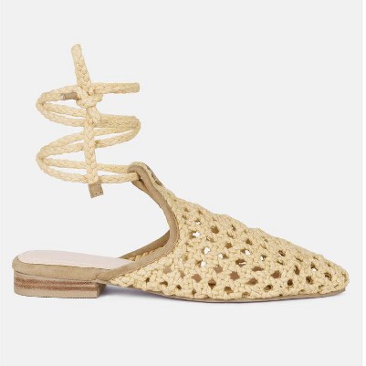 Handwoven and knitted cotton mules with foam cushioned insole is all natural, comfortable and treasured handcrafted piece. The tie-up flat mule cum sandal will be your favorite go to shoe this spring and summer. Type: Mules Heel Type: Flat Mules?? Closed Pointed Toe Tie-Up Design Upper Material: 100% Cotton Lining: Leather Board Insole: Latex Cushioned Out Sole: Rubber Handcrafted Slides for Spring/Summer RCSH2867