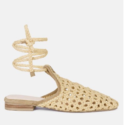Handwoven and knitted cotton mules with foam cushioned insole is all natural, comfortable and treasured handcrafted piece. The tie-up flat mule cum sandal will be your favorite go to shoe this spring and summer. Type: Mules Heel Type: Flat Mules?? Closed Pointed Toe Tie-Up Design Upper Material: 100% Cotton Lining: Leather Board Insole: Latex Cushioned Out Sole: Rubber Handcrafted Slides for Spring/Summer RCSH2867