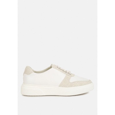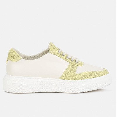 The sneakers are a summer treat with a combination of canvas and leather. The premium quality gives the shoes are luxe feel while also being comfortable with lightly padded insoles. The contrasting paneling is eye catchy and elevates the look of the leather shoes.ÂÂ Upper Material: Genuine Leather + Canvas Outer sole: Rubber Closed Rounded Toe Lace Up Detail Chunky Sole Contrasting Paneling Lightly Cushioned Insoles RCSH4204