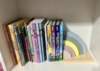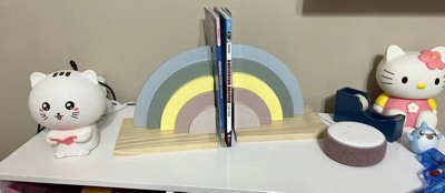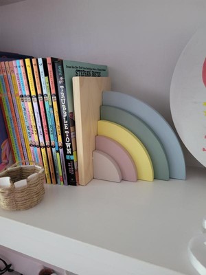The Cloud Island Rainbow Bookends are absolutely adorably cute! They are good quality and quite sturdy. They have little circle rubber grippers on the bottom and have held up a lot of our books! They are lightweight and a great height for taller books too. We love reading so these were perfect to hold up our current favorite books.