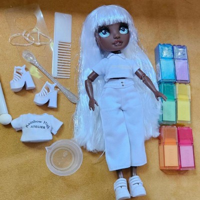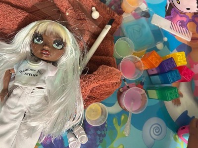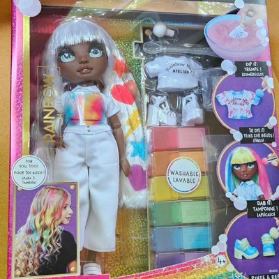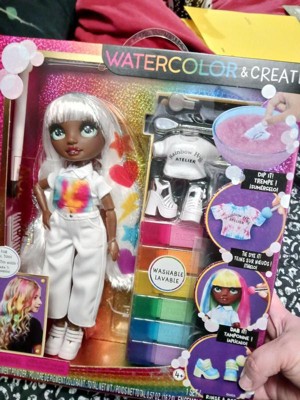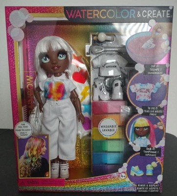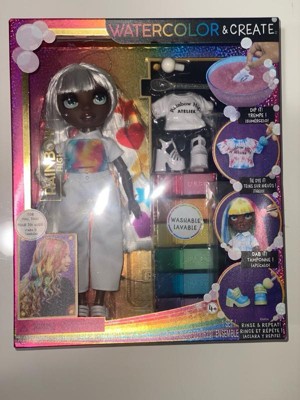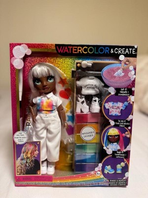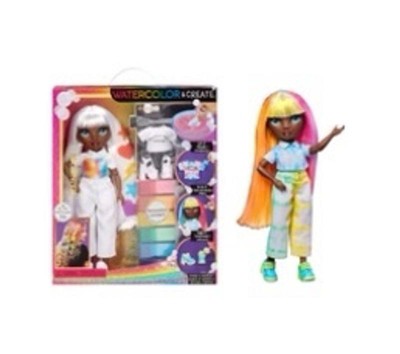 Rainbow High Watercolor & Create Fashion DIY Dolls inspire creativity. Watercolor and Create makes it so easy to design your own custom Rainbow High doll in so many different ways, even Tie-Dye! You can even use the washable watercolors on your own hair! Then, just rinse & repeat and do it all over again. WHAT’S INCLUDED: 1 Exclusive Fashion doll with complete all white doll outfit and doll shoes, bonus doll top, bonus doll sneakers, 6 rainbow washable watercolors, dual ended application sponge, rubber bands, stencil, measuring cup, disposable bowl, spoon and comb. WATCH ON YOUTUBE and NETFLIX: Watch the new episodes of the Animated Series on YouTube. And catch up from the beginning on Netflix. Just search for "Rainbow High Dolls".