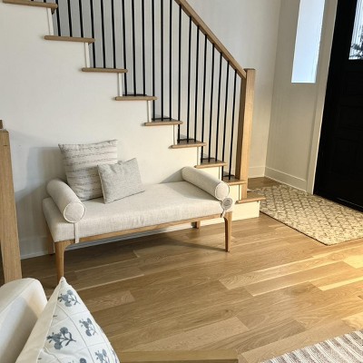 Loved this bench for tying our living room together. It was very easy to assemble and it’s a wonderful neutral piece that can match any design. The side cushions do sometimes tend to fall off as they are tied together by a Velcro band but it could also be due to “rough sitting” from my kids and dog.