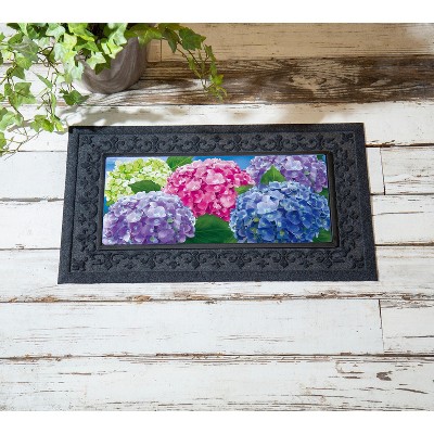 Give guests a warm welcome with this Sassafras Switch Mat. It features a vibrant, floral design. Crafted from heat-sublimated polyester with a rubber backing, this versatile mat is designed to fit perfectly within Evergreen's switch doormat bases. The mildew resistant mat is ideal for indoor or outdoor use and features a skid-resistant backing to help keep it in place. This welcoming mat will freshen up your stoop season after season while ensuring your home stays debris-free. For stains, simply spot clean with soap and warm water.