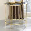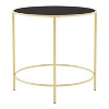 A simplistic end table will bring style and storage to your living area without any fuss. A round tabletop is crafted from tempered glass, perfectly designed to place a small lamp or flower vase. Slim straight legs support this metal end table. Place it between two chairs or next to a sofa for endless enjoyment.