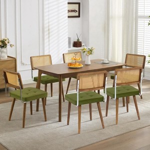 Upgrade your dining space with these mid-century rattan dining chairs, blending handwoven cane backs and plush velvet upholstery (available in black, green, or PU leather brown). The sleek wooden legs and curved silhouette add a timeless, elegant touch to any dining room, kitchen, or cafe.