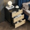 Rattan Nightstand with 3 Drawers, Farmhouse End Table & Dresser Cabinet with Metal Legs, Organizer for Living Room, Bedroom, Hallway