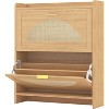 Rattan Shoe Cabinet with Flip Drawers, 2-Tier Shoe Storage Cabinet for Entryway, Space-Saving Hallway Furniture