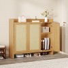 Rattan Shoe Storage Cabinet, 41in Tall Farmhouse Shoe Rack Organizer with Doors & Adjustable Shelves for Entryway Hallway