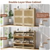 Rattan Shoe Storage Cabinet with 4 Flip Drawers, Hidden Shoe Storage Organizer Cabinet, Wide Freestanding Wood Breathable Shoe Rack Cabinet