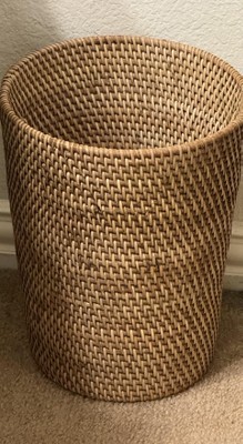 - Light brown rattan wastebasket