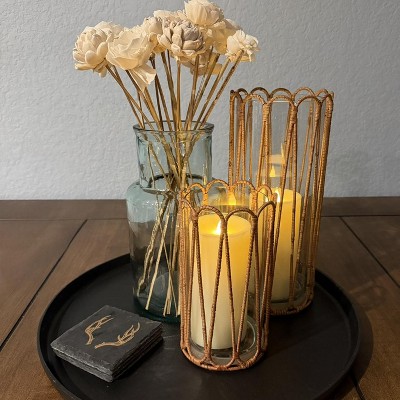 I bought both sizes and absolutely love how they look on my kitchen table. Perfect for battery operated candles and will be beautiful every season.