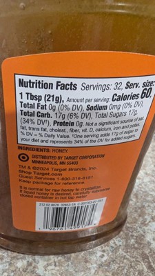 Good honey and comes in a big bottle, so never a shortage. Compared to other honeys you can. It and at a lower price, so I will definitely continue to buy this instead of the other brands. Good to use on everything.