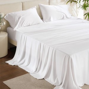 Rayon Derived from Bamboo Sheet Set 4 Pcs White King Cooling & Moisture-Wicking Bedding with Deep Pockets