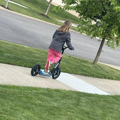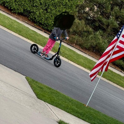 This is a great scooter for an older child. We got this for our 13 year old. Since it has street tires, he can ride it around the block to hang out with friends. The only drawback is that the handlebars are not ajustable. My son is on the taller side so it would have been better if we could raise the handlebars.