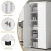 This multifunctional storage cabinet features a durable, waterproof, and easy-to-clean main structure made of high-quality medium-density fiberboard. Silver metal handles and stainless steel hinges ensure smooth opening and closing. The cabinet's interior design combines flexibility with stability, featuring adjustable top and bottom shelves and two fixed middle shelves to meet diverse storage needs. The cabinet is equipped with an anti-tip device for secure wall mounting, effectively preventing accidents and making it ideal for families with children. Its minimalist style and substantial texture blend effortlessly into any home, from bathrooms to bedrooms to offices.