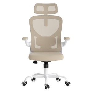 Still troubled by back pain from prolonged sitting at a desk? This ergonomic office chair is designed for those who prioritize comfort and health. Its high back design, coupled with an adjustable lumbar support, precisely conforms to the spine's curve, effectively relieving lower back pressure. The headrest supports 5.1-inch height adjustment and 45° rotation, providing neck support at any time. The armrests can be flipped up 90° and easily pushed under the desk, keeping small spaces tidy and organized. The seat cushion uses high-elasticity foam, providing soft support without sagging; the breathable mesh backrest prevents stuffiness even after long periods of sitting. The chair supports 90°-120° reclining adjustment, allowing for easy switching between work and leisure. The chair is sturdy enough to support up to 350 pounds and takes only about 15 minutes to assemble, helping you easily create a comfortable and efficient home office space.