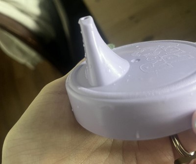 A: Thank you so much for your question, Tina. It has a hard spout cup, which makes it harder for a little one to bite through the spout.