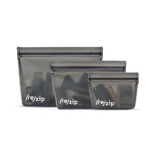 (re)zip Reusable Leak-proof Food Storage Stand-Up Bag Kit - Snack, 2-Cup, Quart - Dark Gray - 3pc