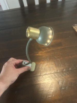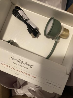 Make reading time brighter with this Reading Booklight from Hearth & Hand™ with Magnolia. Designed with a base push-button switch, this booklight offers a 71-lumen output that provides clear, comfortable illumination. It features a rechargeable design that delivers up to a three-hour run time and includes a USB-C cable for quick charging. Crafted from metal and ABS, this booklight also includes an incandescent bulb with a four-year life and a built-in lithium-ion battery.