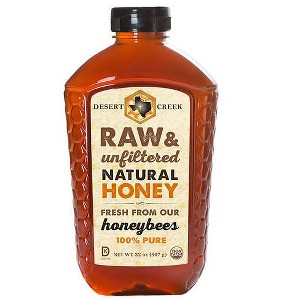 Discover the natural goodness of Desert Creek Honey’s pure, raw, and unfiltered honey in a convenient 32oz size, perfect for everyday use. Produced and harvested from our own bees in clean American fields, our honey is unprocessed and retains all the essential enzymes, amino acids, vitamins, trace minerals and pollen naturally found in raw honey. This delicious premium honey is carefully extracted by our beekeepers, then bottled at our rural Texas facility without any cooking, pasteurizing or filtering in order to preserve the maximum health benefits and rich layered flavor that nature intended. Even though the USDA will not certify American honey as organic, every batch of our raw American honey is tested to meet or exceed all organic testing standards. This ensures that the honey you purchase from our family farm remains high-quality and pure. Beginning as small-scale beekeepers selling local honey, we understand that the smooth taste and delightful aroma of raw honey is the perfect natural sweetener and is best enjoyed unprocessed. As we have grown throughout the years, we still ensure that all of our honey retains the natural health benefits of real honey and remains untouched, just as the bees intended. Thank you for supporting our family farm!