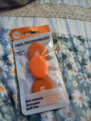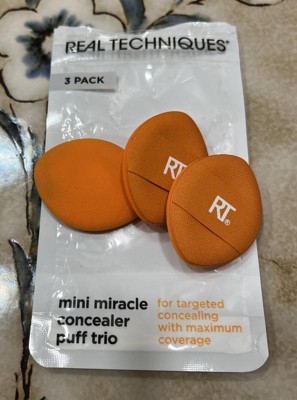[This review was collected as part of a promotion.] Hey Beauties! 💖 #RealTechniquesGiftedMe The Real Techniques Mini Miracle Concealer Puff Trio brings you three mini-sized puffs in a new ulta-soft sponge material for targeted concealing and covering. These extra small makeup puffs slip on your finger and are held in place with the control band for easy, precise application. The mini size fits into the contours of your face, so you can achieve maximum coverage by tapping liquid or cream concealer on any blemishes or imperfections. The best part? These mini puffs are made of a super dense material that reduces product absorption for less waste and more coverage. These concealer puffs are also perfect for taking on-the-go to touch-up throughout the day. It’s recommended to replace them every 30 days. I absolutely am in love with how precise these concealer puffs are. They cover your under-eye area and any blemishes with such ease. They're quick and easy to use. They're also perfect for on the go. Product Shown: @RealTechniques~ Mini Miracle Concealer Puff Trio