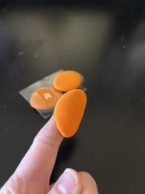 [This review was collected as part of a promotion.] I absolutely love these mini miracle concealer puffs! They are the perfect size for my skinny fingers and the band makes sure they stay securely in place while applying concealer. The way the pointed tip ends are shaped help make it easy to get into the little corners. Also love the beautiful bright orange color! They are easy to use and feel soft on the skin. They are small, but also easy to wash after use.