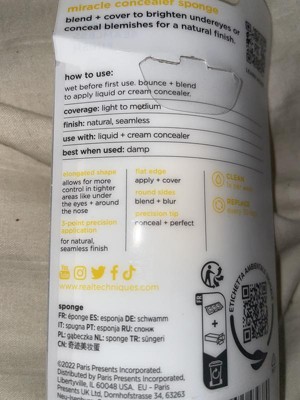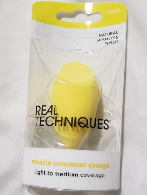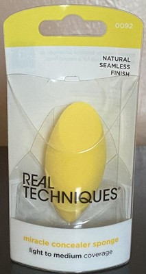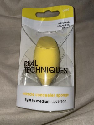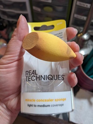 [This review was collected as part of a promotion.] The Real Techniques Miracle Concealer Sponge is the perfect size and shape for providing targeted coverage and blending out concealer. I have loved how it helps to blend out concealer without removing too much product. It is just porous enough to pick up a small amount of product so you don't waste a ton of concealer. The shape of the sponge is excellent for reaching the inner corners of the eyes, the sides of the nose, rolling it lightly under the eyes for a seamless blend, and the flat part of the sponge is great for spot blending. I love the look of using the sponge over tapping concealer in with my fingers. Using the sponge damp gives the best result. I highly recommend trying the Real Techniques Miracle Concealer Sponge!!