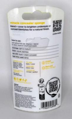 [This review was collected as part of a promotion.] I think the miracle concealer sponge is the perfect size and shape. Finally a makeup sponge I can actually use properly for concealer. I tried it both wet and dry. For me it worked better dry. I also tried it for applying concealer to bare skin and also over foundation. It worked well both ways. The flat end is my favorite part for stippling concealer on. The pointed end is great for narrow or smaller spots like the inner corner of your eyes.