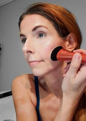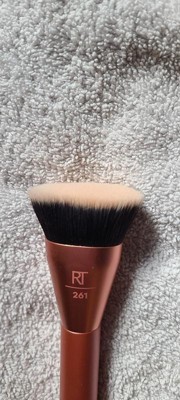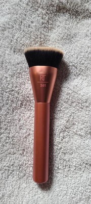 [This review was collected as part of a promotion.] I've been practicing with the Real Techniques 261 Snatch + Sculpt brush for a little over a week and it can be a game changer. I have always said I'd choose blush over bronzer if the choice had to be made but I think it was mostly because of familiarity and being told "Contouring is difficult and takes lots of time..." So it can and it can be but it doesnt have to be with the right products. This brush has a design unlike any I've seen and it somehow allows for precise application and blending in one, to create a more lifted look; especially with the cheeks. The brush has a larger, oval shaped head than most in our collections which makes "precision" seem like an odd adjective but it is precise when applying product (cream, liquid or powder) using the flat top of the brush. The fibers are packed tightly but the vegan material is soft and flexible. The fibers will grab the product for you and in my experience, when I dipped the brush in product more than once per cheek it ended up being too much. The key is similar to the Power Blush brush in applying then slightly turning the brush to blend holding at an angle. The difference in the two (aside from shape, purpose etc) is I found a better, more natural look with the 261 brush when using a sweeping motion to apply bronzer just under my cheekbones instead of stamping or stippling it like I do using the blush brush. Blending is crucial but will be different for everyone's own preferences. The brush can be quickly cleaned with the spray style cleaner but since the design packs prduct along the fibers, I'd recommend fully cleaning it at least every other use.