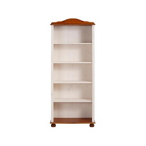 RealRooms Chester 5 Shelf Open Bookcase, White and Honey