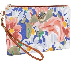 Add a pop of color and elegance to your everyday essentials with the Rebecca & Rifka Vibrant Floral Print Zippered Wristlet. Designed for fashion and functionality, this stylish wristlet offers the perfect blend of practicality and sophistication.Dimensions: 9 inchL x 7 inchH x 1.5 inchWKey Features:Stunning All-Over Floral Print – A vibrant and eye-catching design that adds a fresh, feminine touch to any look.Premium Faux Vegan Leather – Crafted from high-quality, cruelty-free materials for durability and a luxe feel.Gold-Tone Medallion Accent – Features a signature medallion emblem for a refined and polished finish.Spacious Main Compartment – Designed to store your must-have essentials while maintaining a sleek profile.Secure Zip Closure – Smooth, high-quality zipper ensures your belongings stay safe and secure.Detachable Wrist Strap – Provides versatile carrying options—wear it on your wrist or slip it into a larger bag.Compact & Lightweight – Perfectly sized for convenience, making it an ideal companion for day-to-night outings or travel.