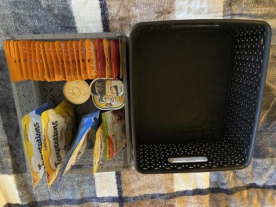I bought one in gray to have my cat's food and treats organized and used my black bin for other personal use. See the photos. I'm happy.