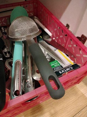 I do think this is a decent sized crate perfect for storage, but snapping the corners together is really difficult. I originally kept this in my car to use when bringing takeout home, so maybe the heat warped it but I have only been able to successfully snap all the corners together once.