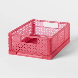 Rectangular Plastic Foldable Medium Crate Pink - Brightroom™