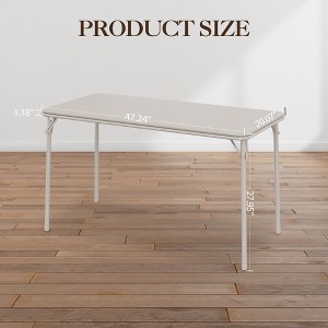 Beige Rectangular PU Folding Table - Portable, Space-Saving, Lightweight, Durable Iron Frame, Sponge Padded Multi-Purpose Desk