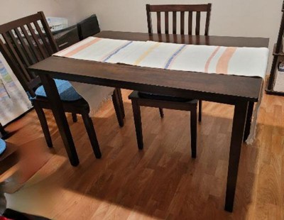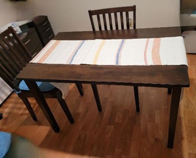 I really wanted the table to work- but it's just to skinny. looks cute but 4 plate settings would be very crammed. should have measured that was my fault.