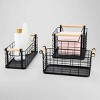 This Rectangular Wire Natural Wood Handles Basket is a must-have for anyone who loves keeping their home organized and tidy. It has a wire construction with two elegant wooden handles on the sides, so there are plenty of ways to utilize it for storage and decor in your home. Hang it off a kitchen rack to store an assortment of spices, slide it in a linen closet to keep toiletries tidy, or set it on a table and embellish it with items to display. It has an iron construction available in a sleek black or white, perfect for matching any furniture color scheme and style.