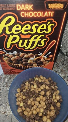 [This review was collected as part of a promotion.] The Reese’s puffs dark chocolate has a richer chocolate taste but it overpowers the peanut butter a bit it’s good just not as balanced as the original