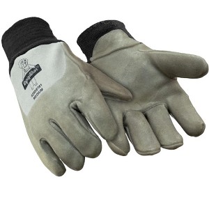 The RefrigiWear Deerskin Leather Glove with Nitrile Coating features genuine split deer leather for added durability, and palms dipped in water-repellent nitrile coating which improves grip capabilities on wet surfaces. When it comes to cold, your hands will stay warm with a protective layer of foam insulation and a comfortable fleece lining.