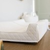 [This review was collected as part of a promotion.] Shipped folded in half but fluffed up right away, I love that it has nice high curved sides to keep the baby from rolling off. The wipeable cover makes it super easy to clean for the inevitable diaper accidents, all in all just a great changing pad.