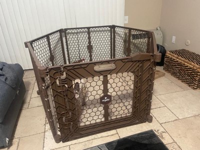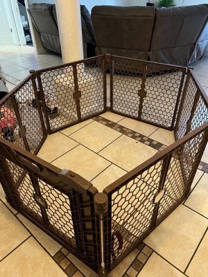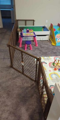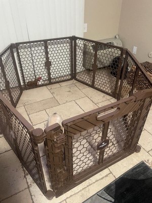 Regalo Plastic Play Yard with Door - Brown: Hardware Mounted, 26" Height, 192" Length, Use on Patio or Room Divider