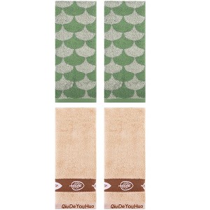 - 4 pcs hand towels, geometric hand towels: 2pcs, 13" x 29", 100% cotton; leaves hand towels: 2pcs, 13" x 29", 70% cotton, 30% polyester